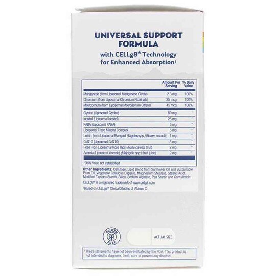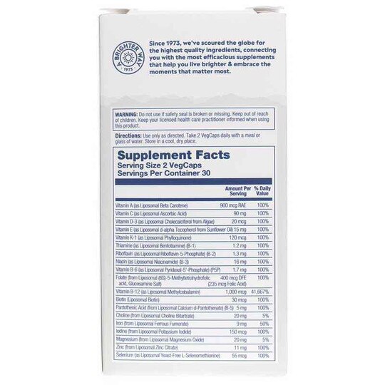 Solaray's proprietary liposomal process is designed to protect these vitamins and minerals to ensure they survive digestion to reach and be absorbed by your cells. Combined with our stringent quality testing protocols, you can rest assured the nutrients on the bottle are the nutrients you're getting - right where your body needs them.