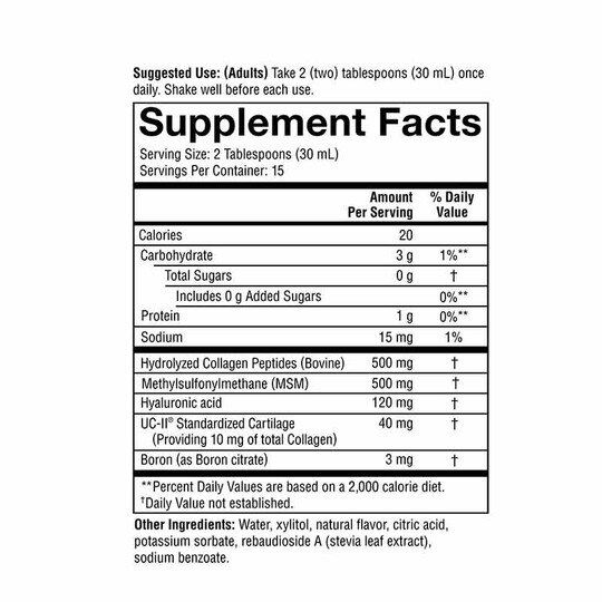 Youtheory® Joint Collagen Liquid offers clinically studied UC-II®, a type type II collagen to help replenish the collagen that diminishes with age to soothe, support and protect joints and cartilage.