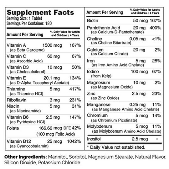 Other Ingredients: Mannitol, Sorbitol, Magnesium Stearate, Natural Flavor, Silicon Dioxide, Potassium Chloride.