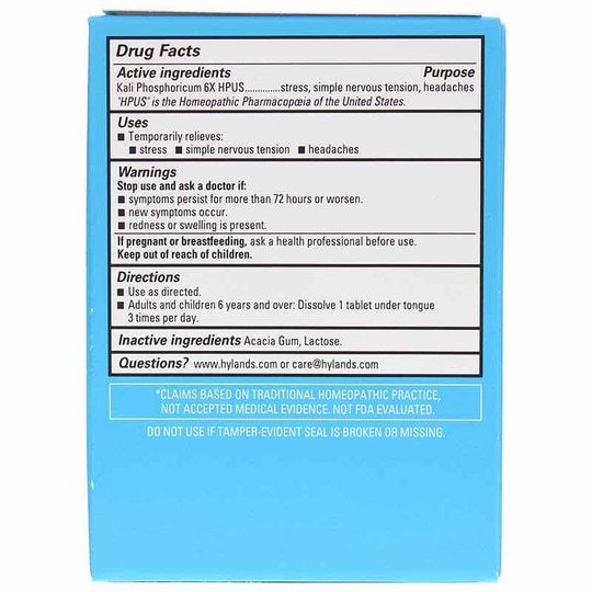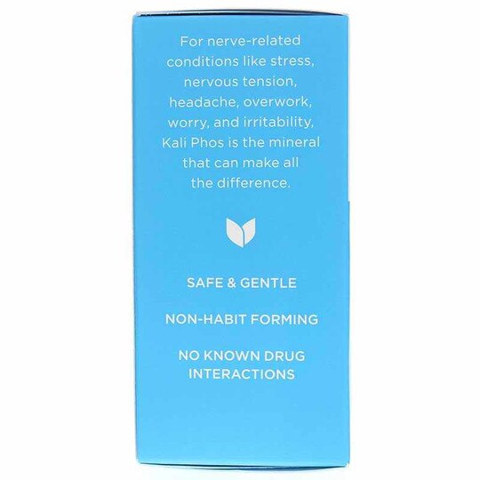 Kali Phos. (Kali Phosphoricum) from Hylands is the nerve nutrient cell salt that provides homeopathic support for restorative relief for symptoms of stress and nervous tension, occasional sleeplessness, and headaches by helping the body control pain signals, localize or resolve pain, and calm responses. Tablets are flavorless and dissolve immediately without water for no upset stomach.