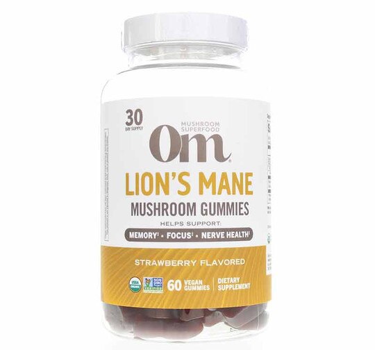 Om Mushroom Lion's Mane Gummies deliver 1,000mg of organic lion's mane mushroom per two-gummy serving. Each serving provides functional mushrooms renowned for supporting memory, focus, mood, and total brain health while promoting immune and digestive wellness. Free from artificial sweeteners and preservatives, these gummies offer a convenient way to receive lion's mane's comprehensive benefits.
