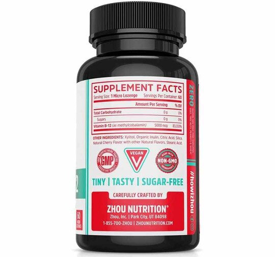 Zhou Methyl B-12 Bioactive Energy Sublingual is the most bioavailable form of B-12 for active energy support. Methyl B-12 provides optimal absorption and retention by the body so you get the most out of every lozenge. These tiny cherry-flavored lozenges are a tasty way to add the benefits of this essential vitamin to your day.