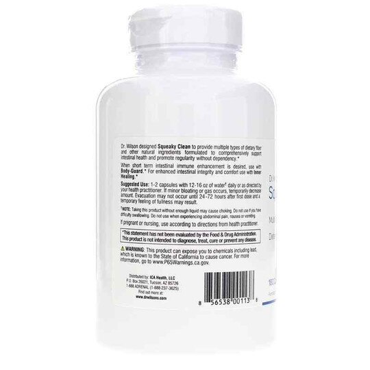 Squeaky Clean from Dr. Wilsons is the ideal, all-natural way to add fiber to your daily diet. It supports your body's natural detoxification processes and elimination of toxins. It contains multiple sources of fiber to help cleanse and condition your intestinal linings and supports a healthy balance of intestinal flora.