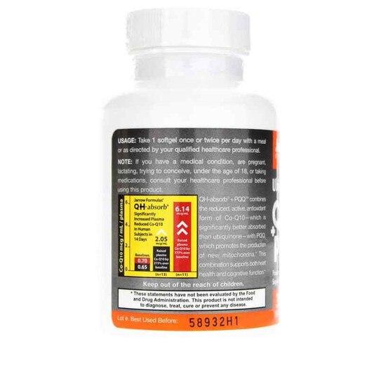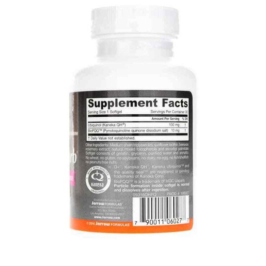 QH-absorb + PQQ from Jarrow Formulas combines the reduced, active, antioxidant form of Co-Q10 - which is significantly better absorbed than ubiquinone - with PQQ, which promotes the production of new mitochondria. This combination supports both heart health and cognitive function.