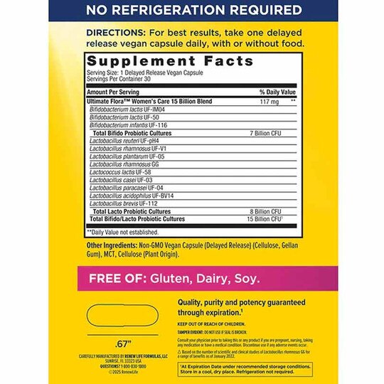 Women's Care Probiotic 15 Billion from Renew Life is a high-potency formula with 8 scientifically studied Lactobacillus strains for women to target your body's unique needs. This daily probiotic promotes digestive balance and supports vaginal and urinary health, so you feel better, lighter, and more energized.