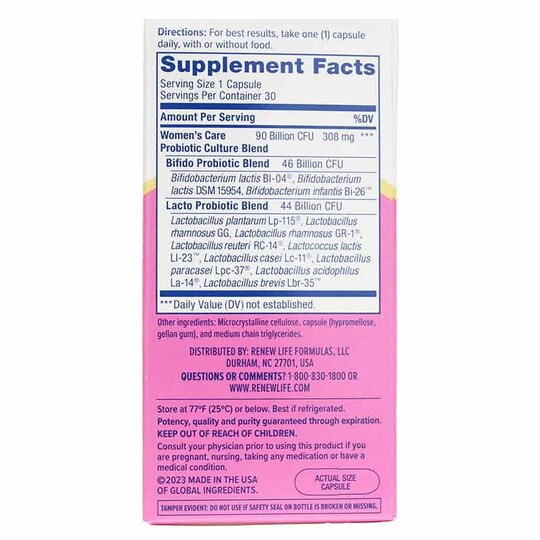 Renew Life offers a once-daily, high-potency, natural probiotic supplement called Ultimate Flora Women's Care that promotes digestive, immune and urogenital health.