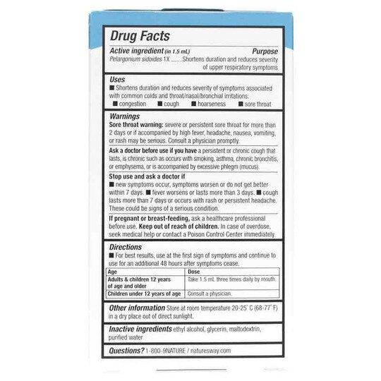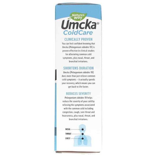 Nature's Way offers a homeopathic formula called Umcka ColdCare that may shorten the duration and reduce the severity of upper respiratory symptoms.