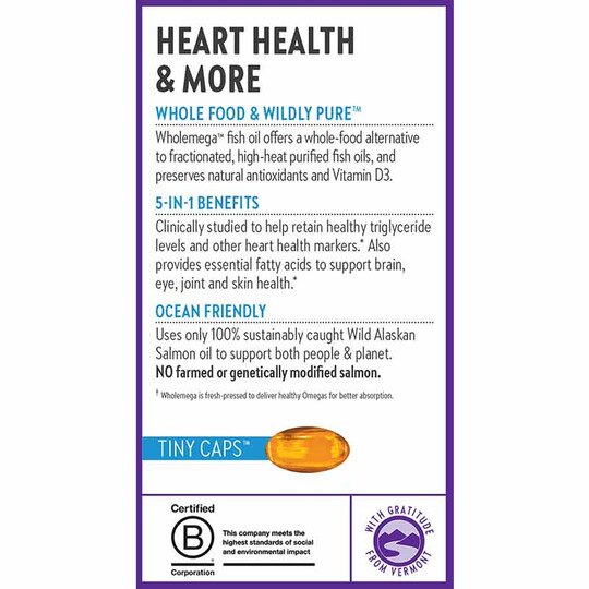 Meet the gold standard in fish oil—naturally pure Wholemega™ in easy-to-swallow 500 mg softgels! Delivers 935 mg of highly absorbable† good Omegas plus Vitamin D3 & Astaxanthin, a powerful antioxidant.
